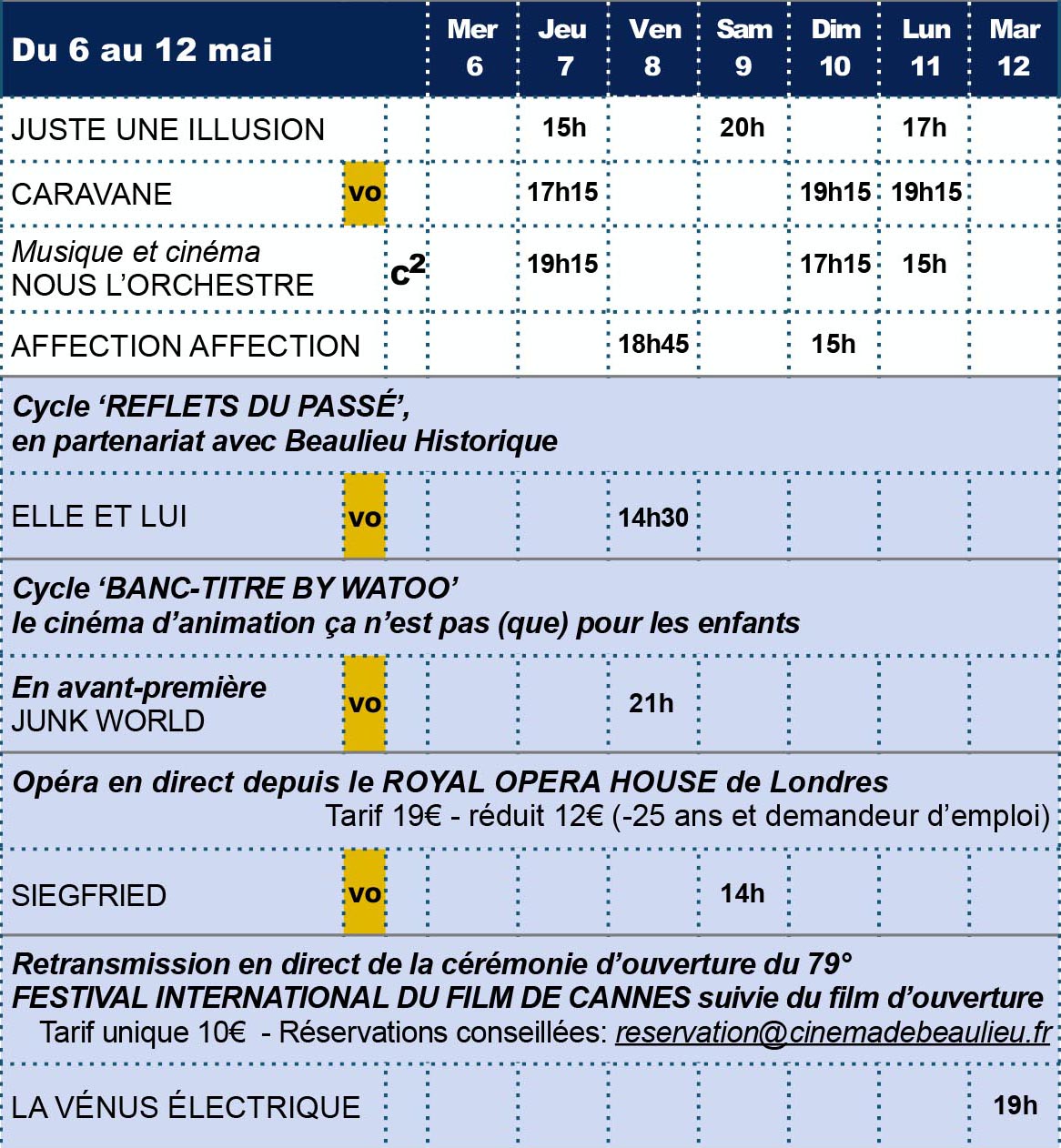 Pour les séances en salle, les tickets de cinéma sont en vente sur place , à l’accueil du cinéma.