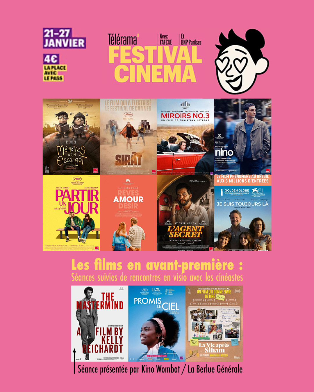 La 28e édition du Festival Cinéma organisé par l’AFCAE et Télérama vous permettra de voir ou revoir, dans notre salle, 8 des meilleurs films de l’année, ainsi que 3 films en avant-première.